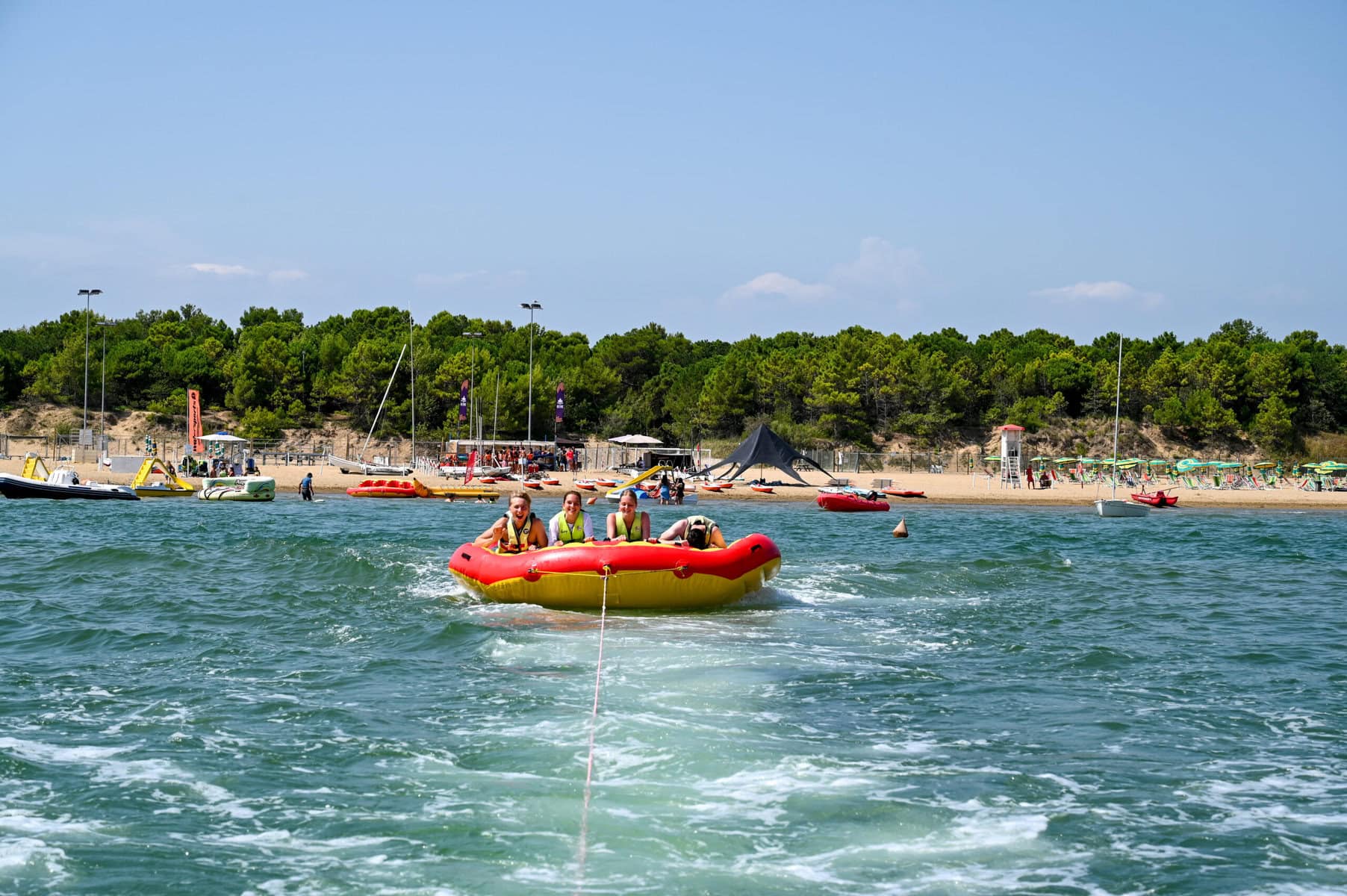 Willkommen im Urlaubsparadies: Wasserpark direkt vor der Tür, Strand in Flip-Flop-Entfernung und jede Menge Sport & Fun. Tagsüber chillen, zocken oder ab ins Meer – abends geht’s mit cooler Action weiter. Und Venedig? Gucken wir uns auch an!