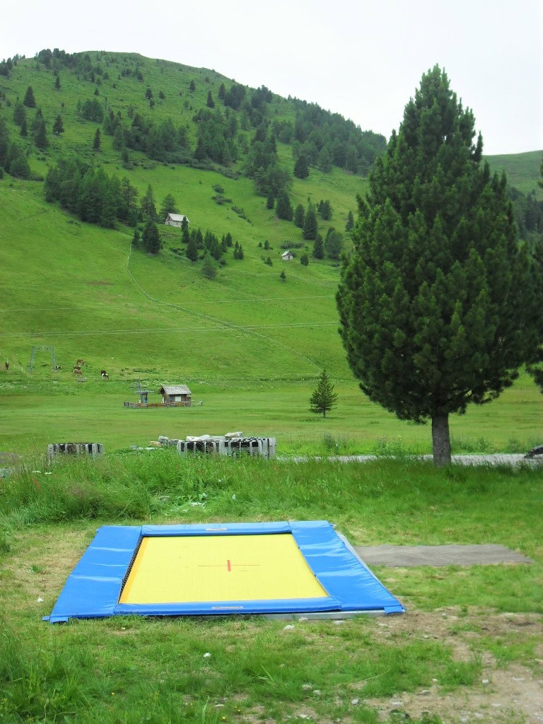 Vor traumhafter Kulisse bieten die Außenanlagen des Gästehauses neben einer Kletterwand auch einen kleinen Fussballplatz und ein ebenerdiges Riesentrampolin.